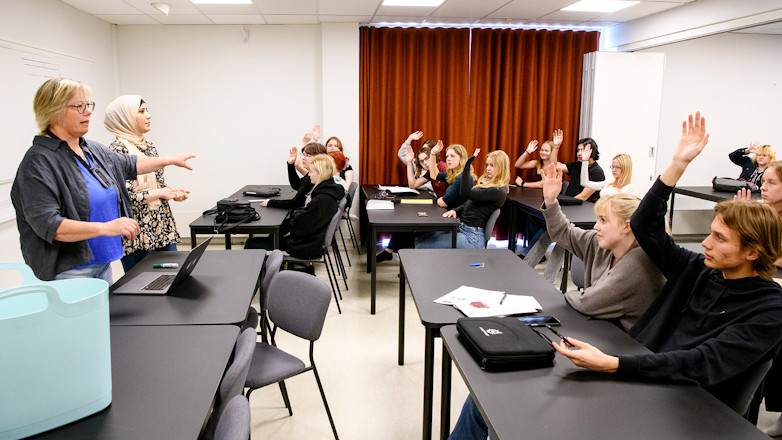 Barbro Berger och Rema Mawed har undervisat tillsammans i matematikämnet under fem år. I början fungerade Barbro Berger som en mentor åt Rema Mawed, men i dag har Rema Mawed egna lektioner och är snart behörig lärare i matematik på gymnasienivå.