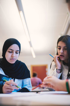 Från vänster: eleverna Yaqeen och Mary. Foto: Oskar Omne