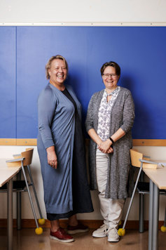 Tuula, Anita och de övriga matematiklärarna på skolan vill att eleverna ska se dem som ett lag. Ett lag som utmanar och hjälper eleverna att utvecklas så långt det är möjligt. Foto: Oskar Omne