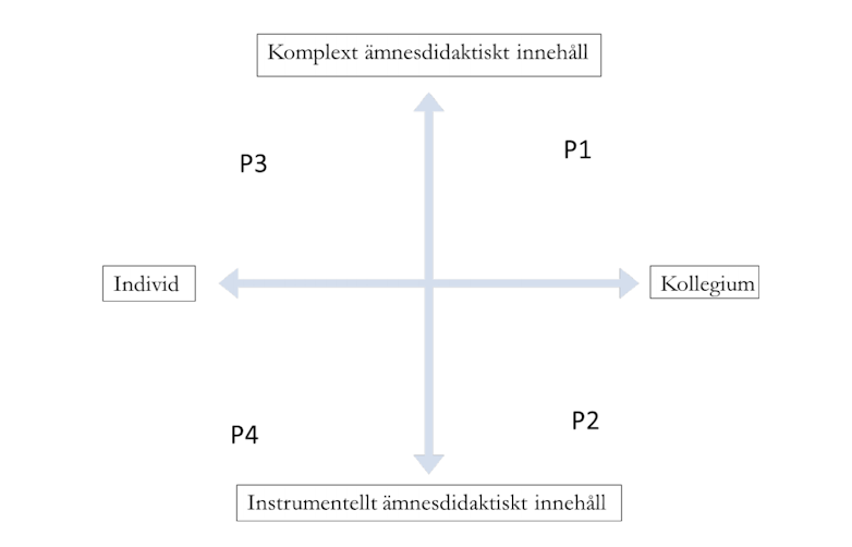 I stället är det punkt 1, det vill säga kollegiala samtal om komplext ämnesdidaktiskt innehåll, som utvecklar hela gruppen mot ett gemensamt lärande.