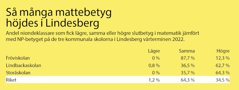 Av de tre grundskolorna i Lindesberg ligger Fröviskolan klart närmast resultaten i nationella provet när mattelärarna sätter sina betyg.