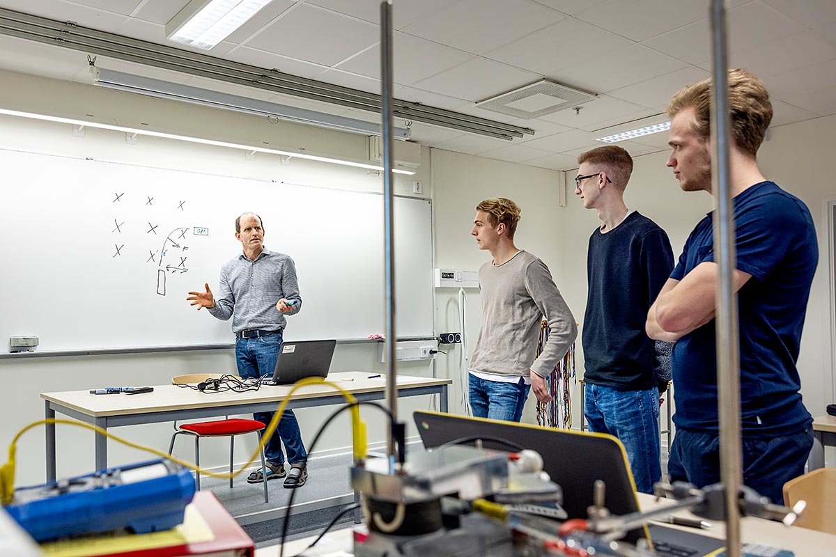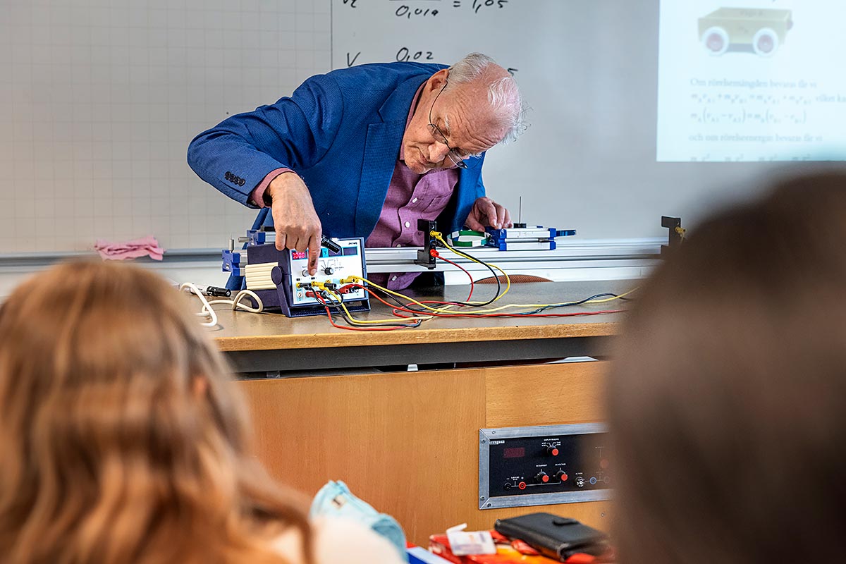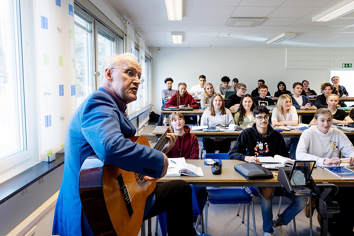 Eleverna Gustav Giebat och Liam Antonsson uppskattar att Östrabogymnasiet inte är en ”elitskola” utan en helt vanlig skola som har plats för alla elever. ”Jag tycker om att förklara för andra, för då lär jag mig själv ännu mer”, säger Liam. Foto: Emelie Asplund