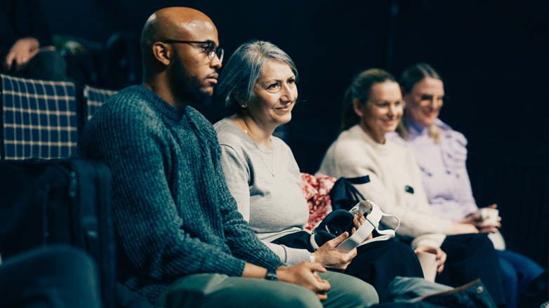 Ibrahim Ibrahim, Mitra Sarchami, Sophia Brügge och Jennie Flood Monaghan får instruktioner inför den tredje övningen som handlar om att uppskatta volymen på olika 3D-former.