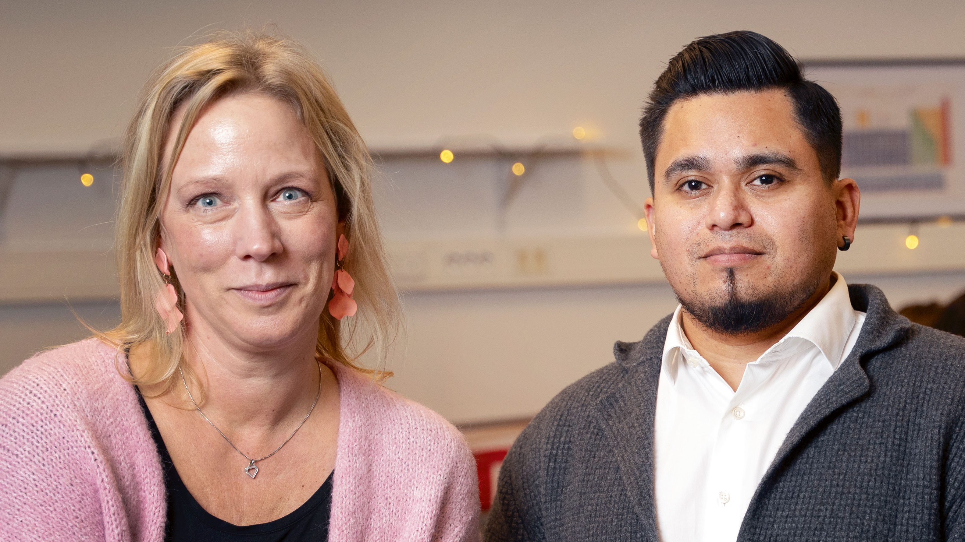 Matematiklärarna Maria Christensen och Viktor Nilsson uppskattar när personer med olika yrken kommer till skolan med räkneuppgifter.