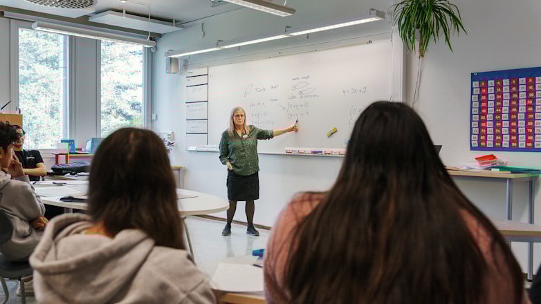 Genomgångarna får ta sin tid. Här går Inger Lignell igenom de grunder som krävs för att eleverna ska hänga med på de vanliga matematiklektionerna.
