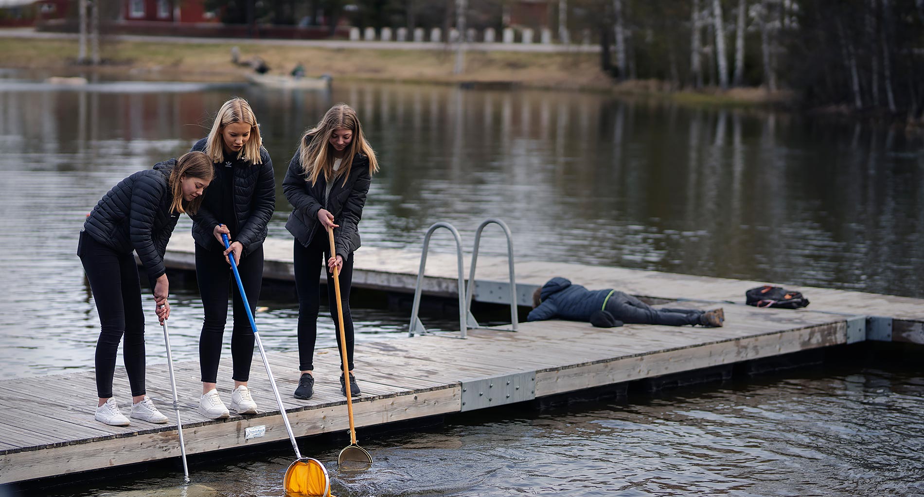 När det är gjort delas håvar och vattenkikare ut och eleverna börjar undersöka vilka insekter och fiskar som numera lever i sjön – för att kontrollera om djurbeståndet förändrats tack vare den nya levnadsmiljön.