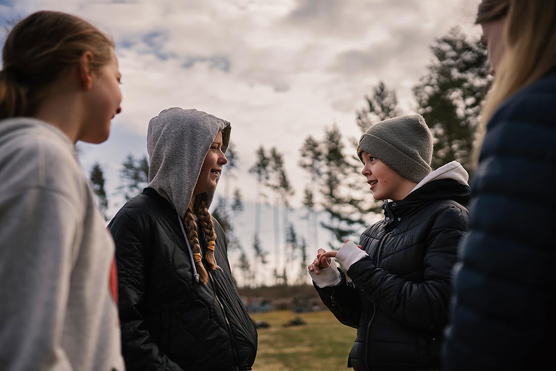 Moa Antonsson (iklädd mössa) berättar att de har fått många nyfikna frågor från människor i bygden om vad som händer i sjön och varför. Eleverna har blivit experter. Foto: Oskar Omne