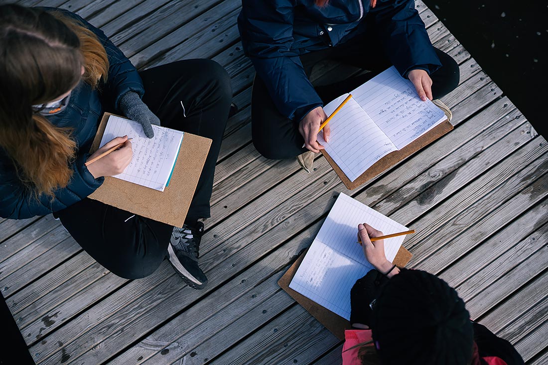 Arbetet är ämnesövergripande. Att skriva loggbok om sina upplevelser under besöken vid sjön är en viktig del av projektet. Foto: Oskar Omne