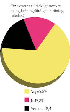 ”Man hinner inte och eleverna ger upp och vägrar.” Det citatet sammanfattar motiveringen till att hela 66 procent av totalt 5 000 lärare i Ämneslärarens stora enkät svarar att eleverna inte får tillräckligt mycket mängdträning i skolan. Många uppger elevernas bristande arbetskapacitet som orsak: ”De orkar ändå inte.”