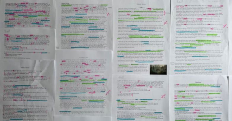 Så här kan det se ut när Fredrik Sandström gått igenom elevernas texter.