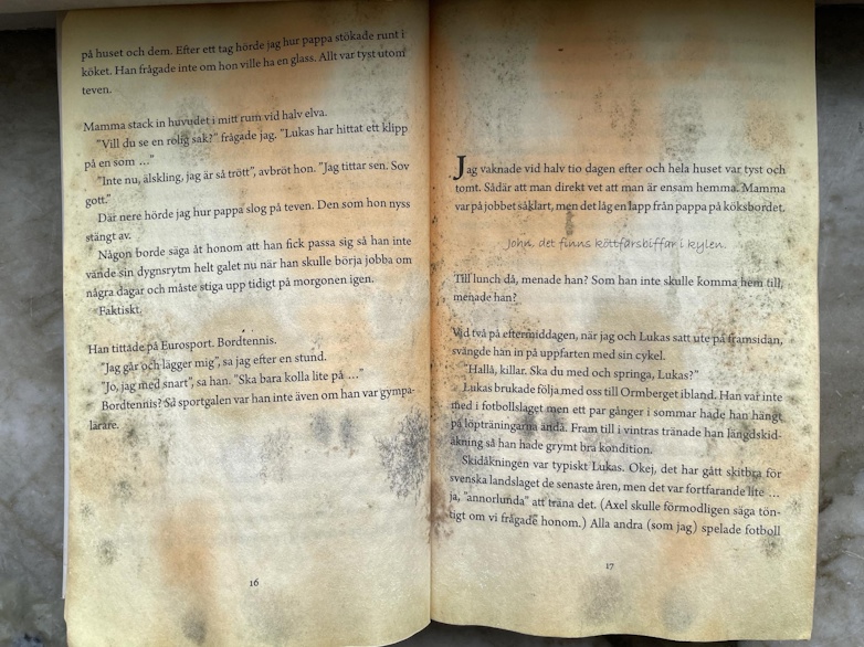 Jag vet att några kommer att återfinnas på något skåp i korridoren, i fel korridor förstås. Några kommer att ligga på platser där och när man minst anar det. Efter några veckor kommer några eftersläntrare med kommentarer som: ”Jag hittade den hos farmor” eller ”Den låg i gympaväskan”. De sent återfunna böckerna återlämnas i väldigt olika skick. De allra flesta är förstås fina, men det är nästintill fascinerande att återfå böcker som är söndertuggade av husdjur eller fyllda med så mycket mögel att vissa sidor inte går att läsa. Några exempel kommer fram först i slutet av läsåret när alla elever städar sina skåp. Ett fåtal hamnar i den lokala köp- och säljgruppen på Facebook och kommer aldrig åter till skolan.