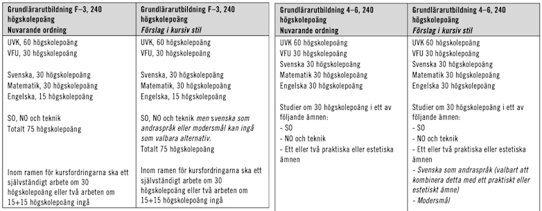Grundlärarutbildningen ska ändras så att ämnena svenska som andraspråk eller modersmål inklusive nationella minoritetsspråk görs valbara även i utbildningar mot grundlärarexamen, enligt förslagen ovan.