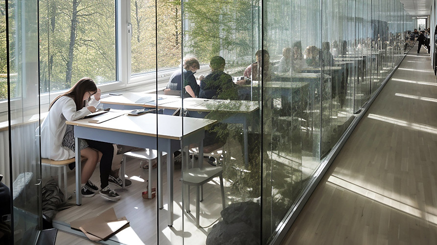 Den trendkänsliga skolan Trevligt, ljust och luftigt. Så löd arkitekternas förklaring till skolväggar i glas. Det visade sig vara förödande för eleverna.
