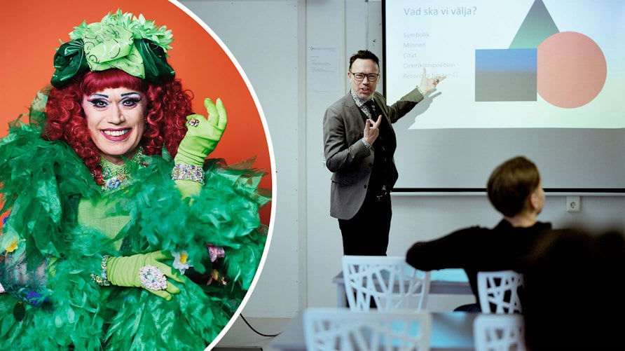 Gör: Lärare i svenska, förstelärare och mentor på NTI Handelsgymnasiet i Stockholm. Är också dragshowartist i teatersällskapet Bland drakar och dragqueens.