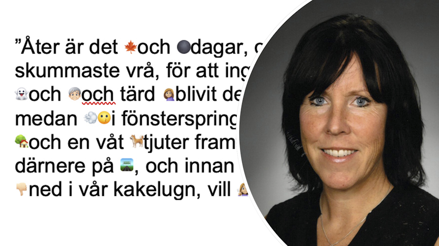 – Det blir levande och eleverna älskar att skriva med emojis. Det finns så många nyanser i emojiska som gör en 123 år gammal dikt väldigt levande, säger Helena Andersson, svensk- och engelsklärare på högstadiet på Ungärde skola i Lima, Dalarna.