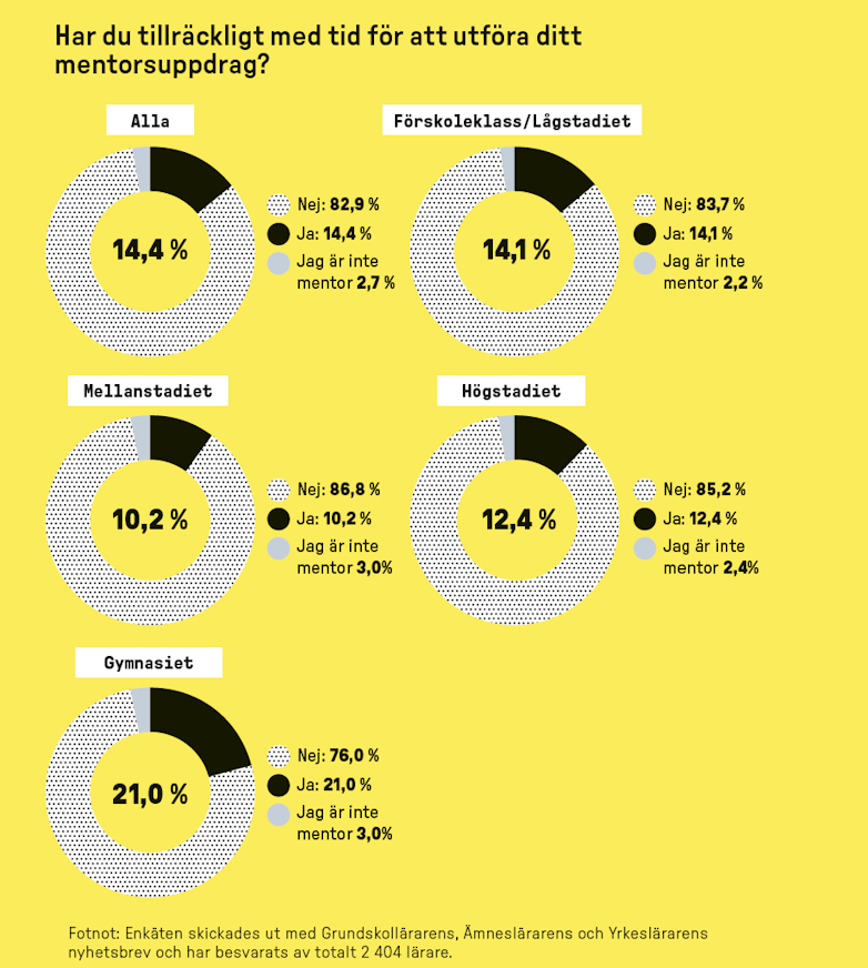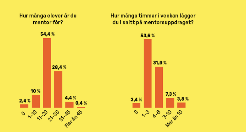 En av alla lärare som har svarat det berättar att han ”tvingas hantera elever med psykostecken, aggressiva/ointresserade vårdnadshavare och har ansvaret för elevens sociala välmående”. En annan skriver att ”vi är poliser och socialtjänst i första hand, i andra hand någon sorts lärare”. Och en tredje konstaterar att mentorsuppdraget tar så mycket tid och kraft att ”jag kommer oförberedd, knäckt och utmattad till min egen undervisning”.