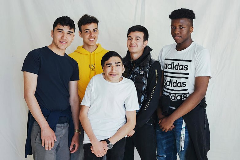 Fem av eleverna i det stolta gänget som har skrivit en bok om sina drömmar. En utmaning, berättar de, eftersom det inte alltid är så lätt att våga drömma. Foto: Oskar Omne