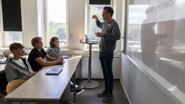 Historie- och samhällskunskapsläraren Stefan Cohen använder sig gärna av tankeexperiment på sina lektioner för att få igång diskussioner och få eleverna att tänka ett varv till. Foto: Henrik Hansson