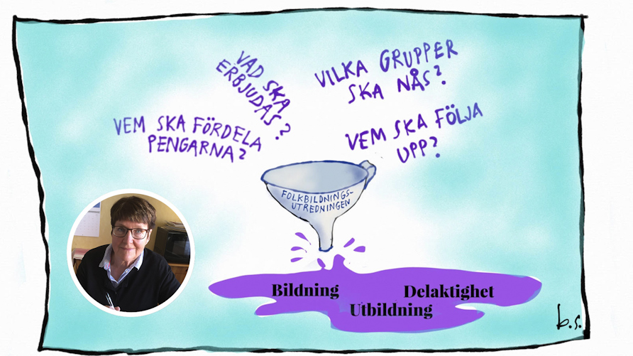 Signhild Håkansson är ordförande i Folkhögskolans veteranförening. Illustration: Björn Sandström.