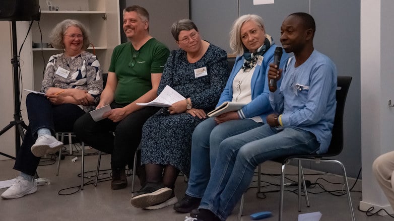 Maggid Mjengwa, generalsekreterare Karibu Tanzania Organization (KTO), Lisbeth Trinskjaer, ordförande för danska folkhögskoleföreningen, Kjersti Versto Roheim, ordförande för norska folkhögskolerådet, Tomas Rosengren, ordförande för Sveriges Lärare Folkhögskola och Sirkka Hokkanen, styrelseledamot i Nordiska Folkhögskolerådet. Foto: Yuliia Kravchenko.