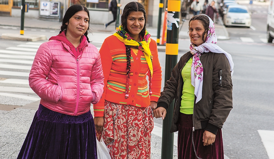 Det är kvinnorna som hämtar kaffe till männen Grafian och Cristi, som också passar på att ladda sin mobil. Zinica och Grafian är gifta. Båda har under perioder arbetat för en svensk städfirma. De har också tillsammans med tio andra romer deltagit i föreställningen Förklädd Gud på Folkoperan. De delade då ut gratisbiljetter till förbipasserande, när de tiggde. Men endast två nappade.