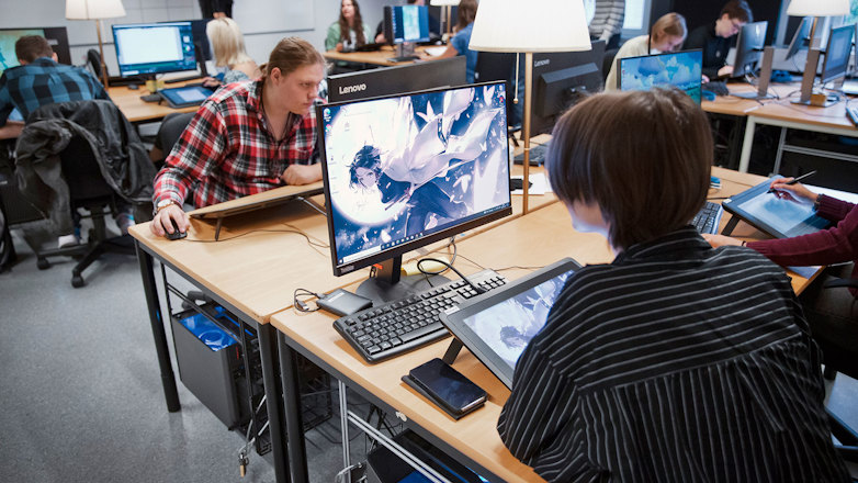 David Bülow tittar koncentrerat i skärmen under ett pass i animation.