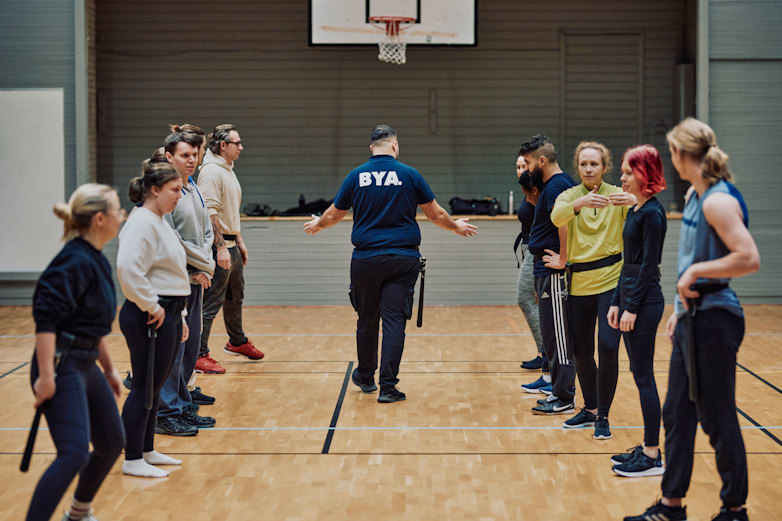 Folkhögskolan hyr in instruktörer från BYA, Bevakningsbranschens yrkes- och arbetsmiljönämnd. Foto: Oskar Omne