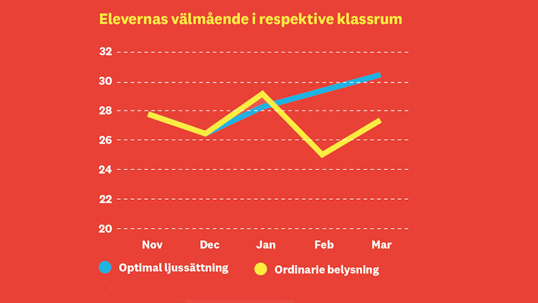 Att ljuset spelar roll visar mängder av studier. I en av dem följde svenska forskare under ett år en grupp åttaåringar som hade klassrum med olika ljusförhållanden. Skillnaden i sjukfrånvaro, tillväxt, melatoninnivåer och beteenden var tydlig. Mer ljus var positivt för eleverna – på alla sätt.