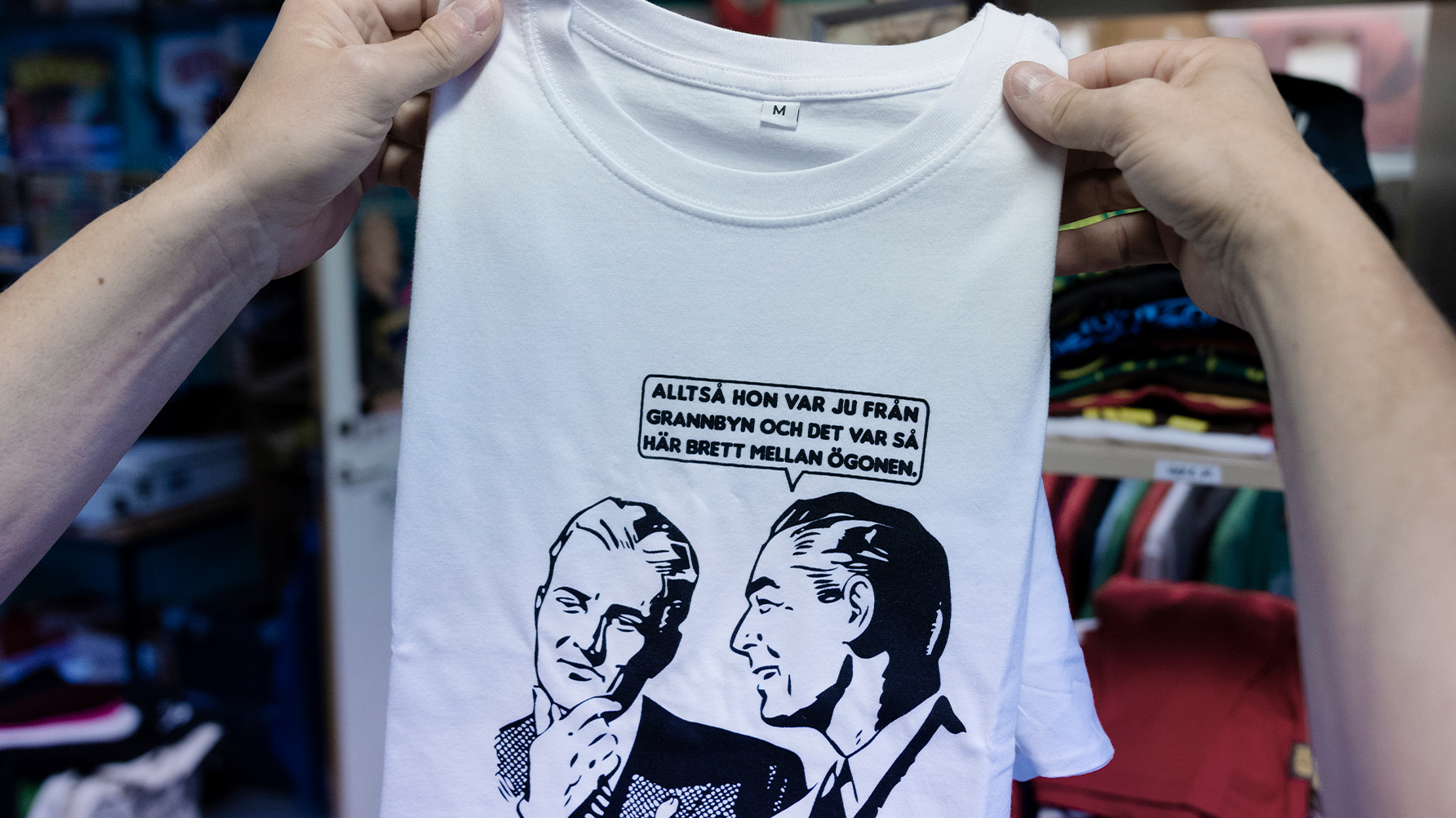 En av hans många många T-shirtar. Foto Mats Andersson.