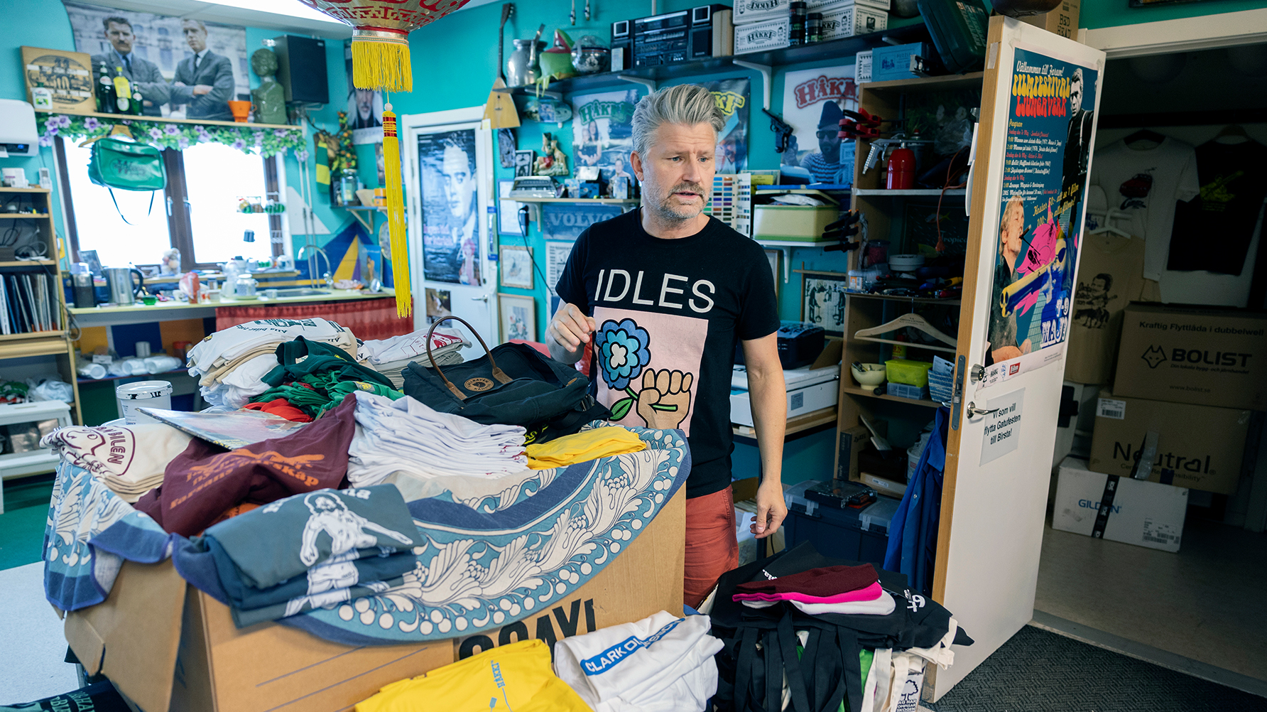 Hans alter ego Håkki tillverkar T-tröjor och hårvax, som han själv uttrycker det. Foto: Mats Andersson.