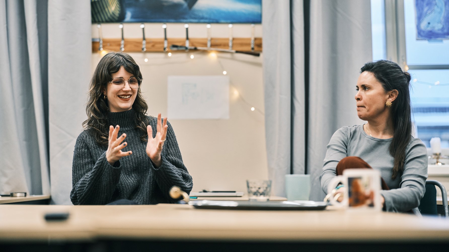 Det här arbetsläget är alltid måna om det veckoliga mötet. Från vänster: Nelly Farran-Lee och Lina Ahlerup. Foto: Oskar Omne.