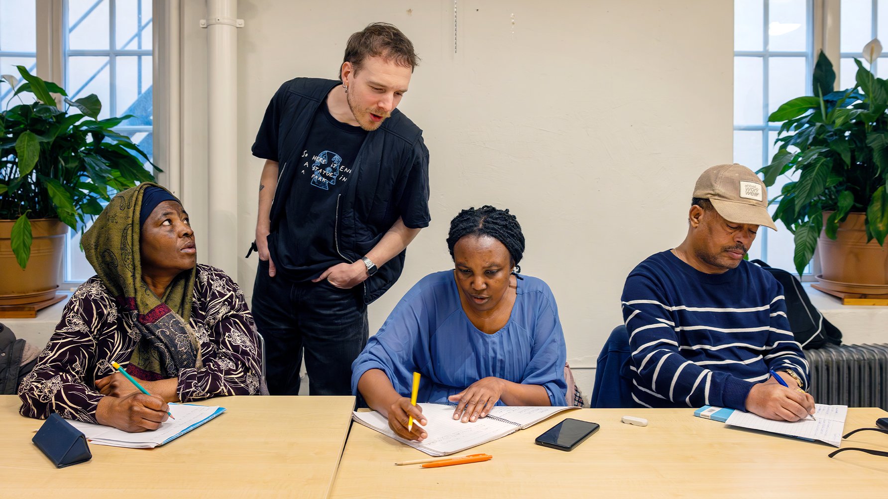 – Det är en utmaning att undervisa på olika nivåer. Inte minst med tanke på att kursen bara är tretton veckor lång. De flesta behöver träna på flera färdigheter i svenska men en del har kommit längre – då finns en risk för understimulans. Efter några veckor brukar jag hitta en nivå där jag kan fånga upp alla, säger Joel Lättman.