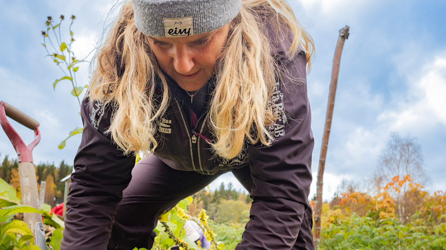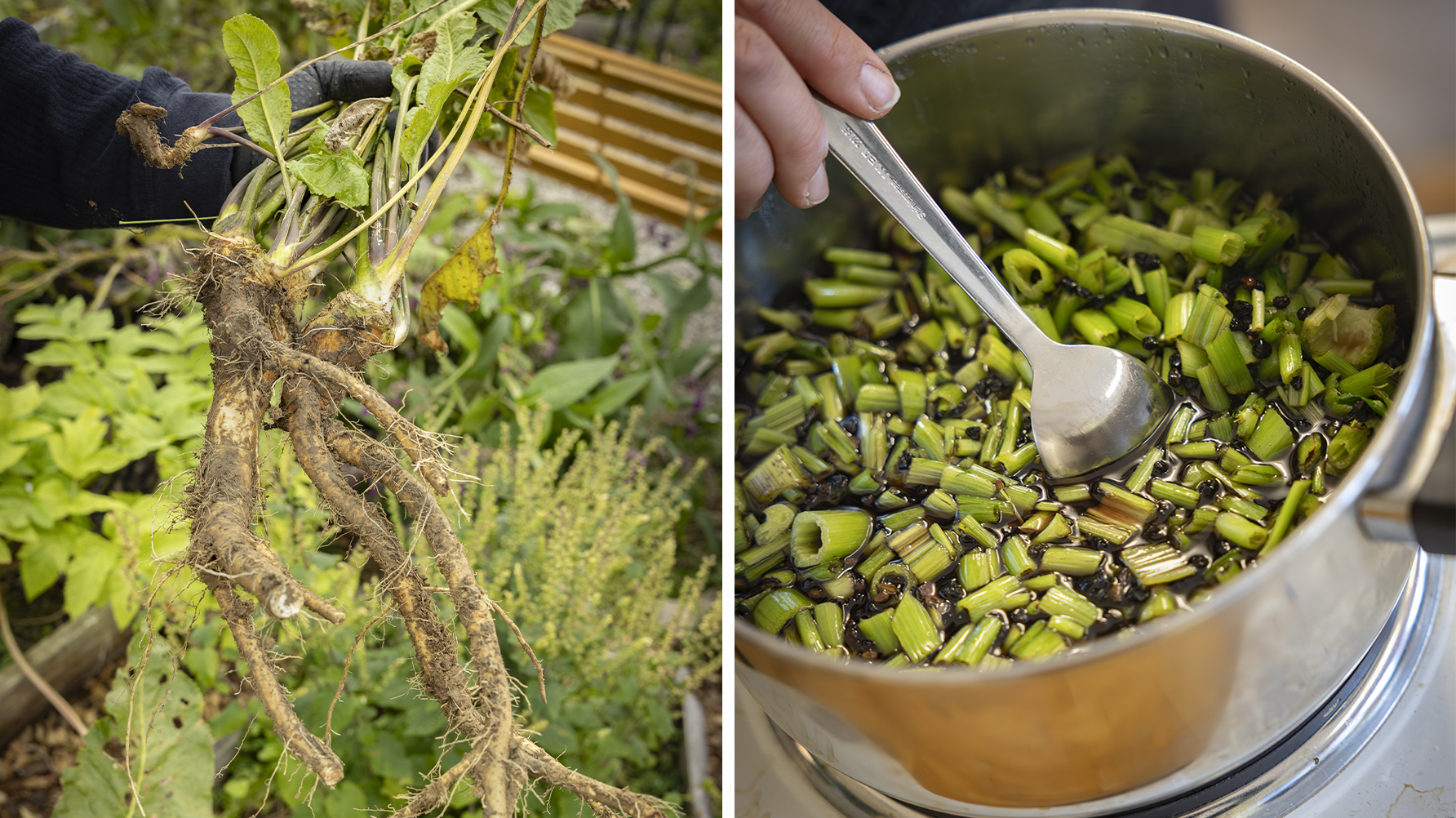 Matia Forss skördar pepparrot. Foto: Michael Engman.