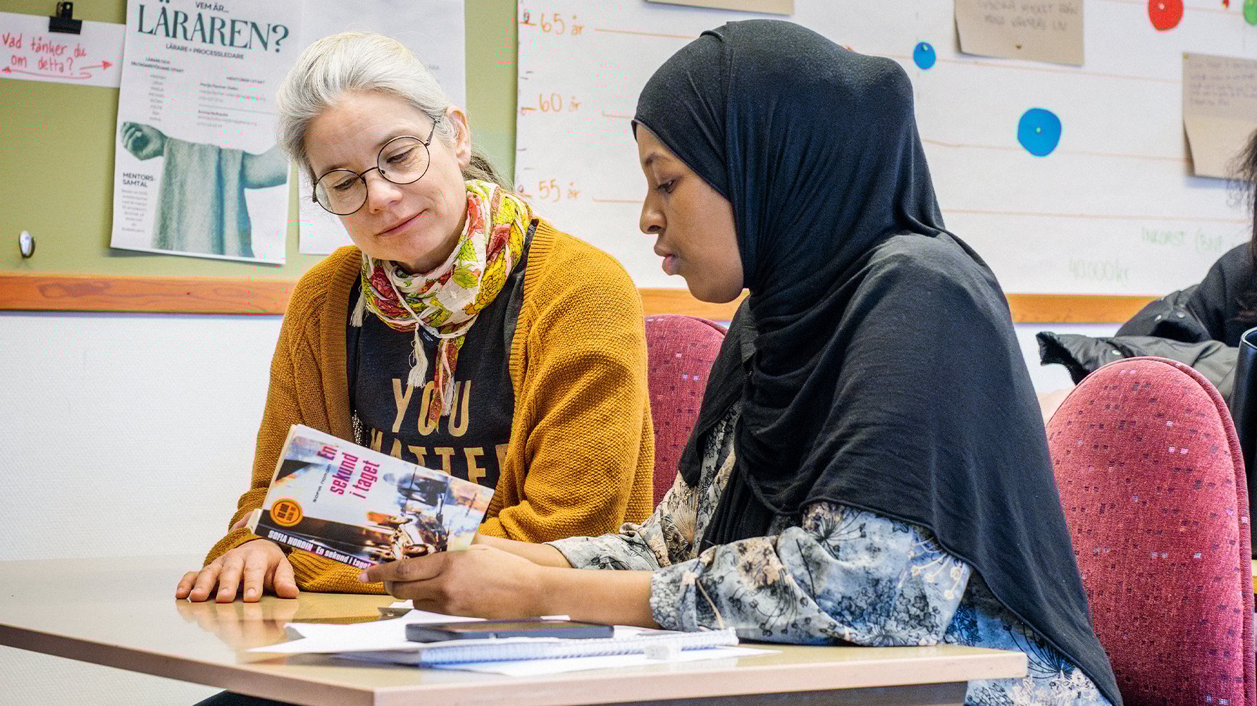 – Vi tenderar att glömma bort hur komplex läsning är. Många har olika typer av npf och har ett försämrat arbetsminne som stökar till det, säger Marija Fischer Odén som undervisar på allmän kurs på Hagabergs folkhögskola i Södertälje.