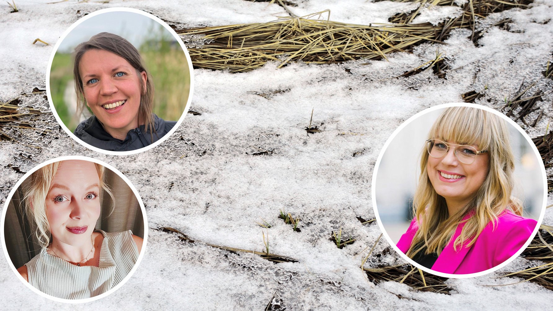 Lärarna i förskolan (fr v) Mia Herttuainen, Marlene Deltner och Ellen Jildeteg svarar på vilka arbetskläder de får i jobbet.