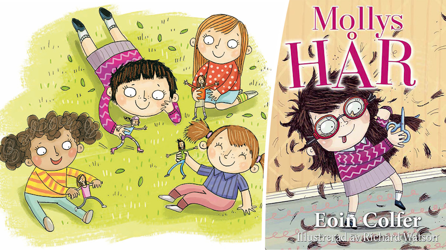6–8 år ”Om man är missnöjd med något ska man försöka ändra på det”, säger Mollys pappa. Hon tar honom på orden eftersom hon är missnöjd med sitt hår. Det är oredigt, har lockiga och raka delar. Det är så orättvist att hon inte kan sätta upp håret i tofsar eller ha flätor. Nu ska hon ändra på sitt hår! Hon samlar ihop lite olika saker som kan behövas, förutom sax såklart. Simglasögon kan vara bra om saxen skulle slinta. Hårgelé för att platta till de värsta lockarna.