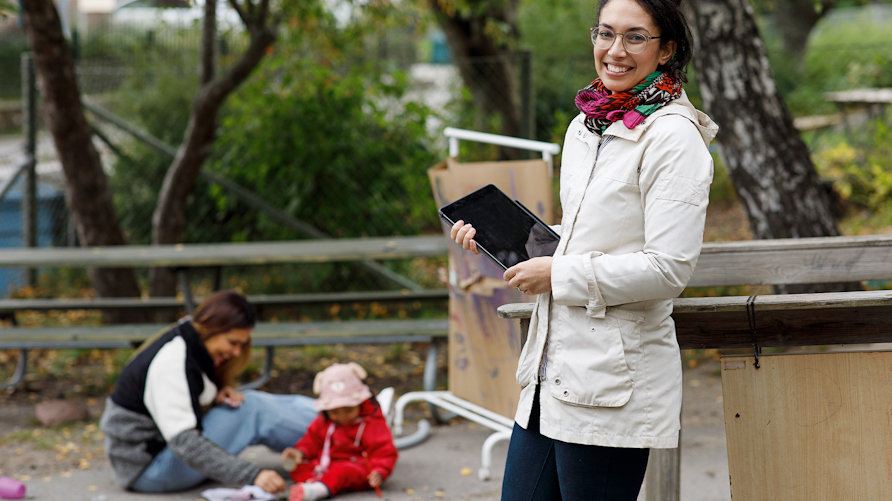 Fortsätt sträcka på dig och presentera dig som förskollärare på förskolan. Vi är många som står bakom dig.