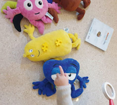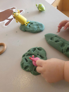 Det ledde till att Babblarna blev det gemensamma projekt som avdelningarna jobbade med förra läsåret. De startade med att erbjuda barnen laminerade bilder på de olika figurerna och efterhand köpte rektorn in gosedjur och plastfigurer i olika storlekar. Barnen började direkt använda sig av figurerna på olika sätt.