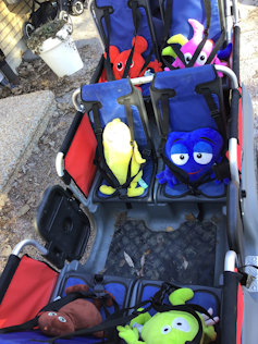 1. Vi laminerade bilder på figurerna och hade dem även i form av gosedjur och i plastvarianter i i olika storlekar. Vi hade flera böcker om Babblarna och lite senare skaffade vi även utklädningskläder.