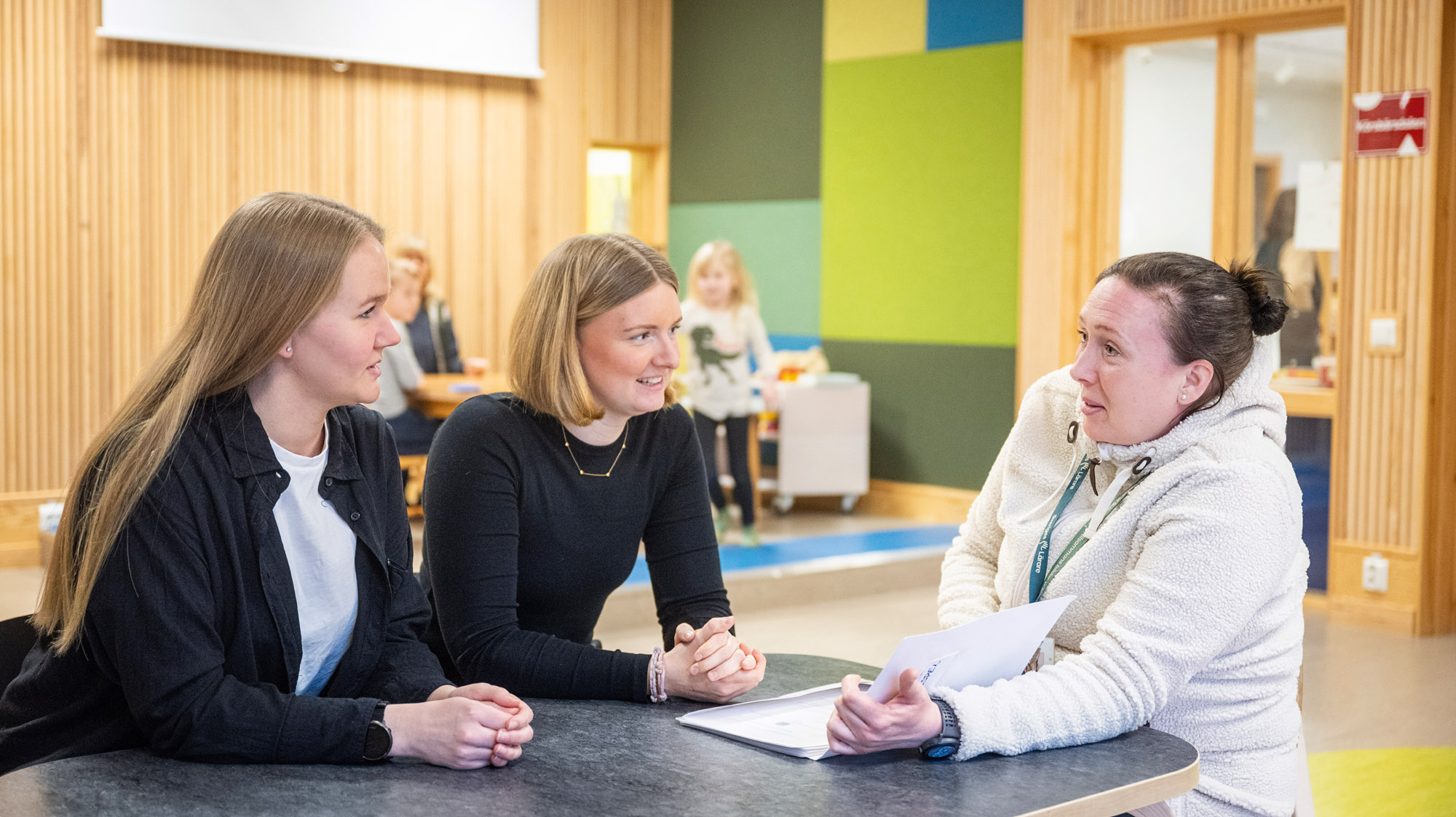 Specialistbarnskötaren Frida Egardsson, barnskötaren Maja Bodin och Eva Lekebjer pratar mycket om tillvägagångssätt.