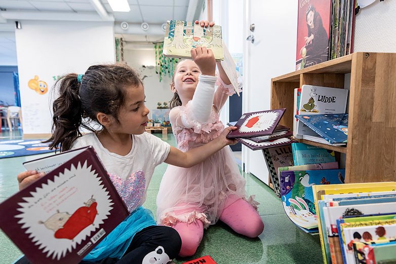 Aqsa och Esra, på avdelningen Pandan på Hyllievångens förskola, gillar att läsa. Foto: André de Loisted