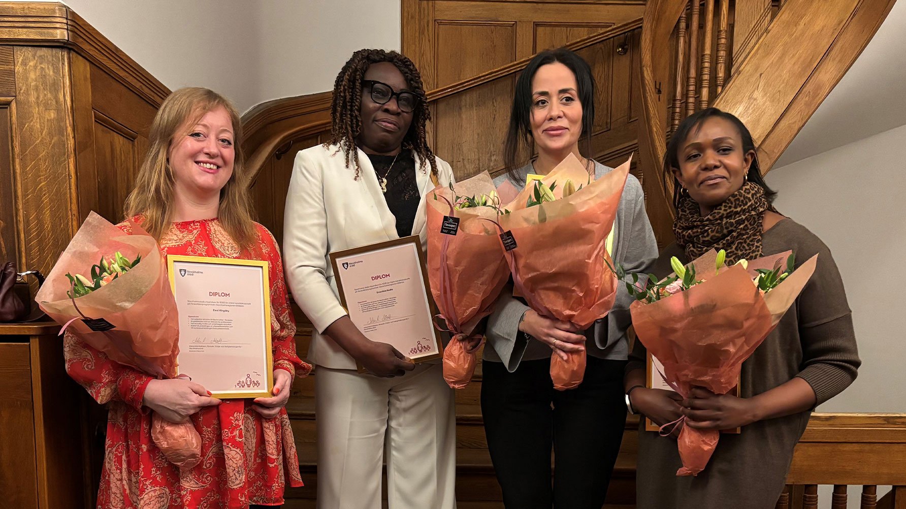 Stockholms stads nya stipendium för förskollärarstudenter delas ut för första gången, till Eleni Kingsley, Ernestine Kodia, Karin Chavez och Irene Kimathi.