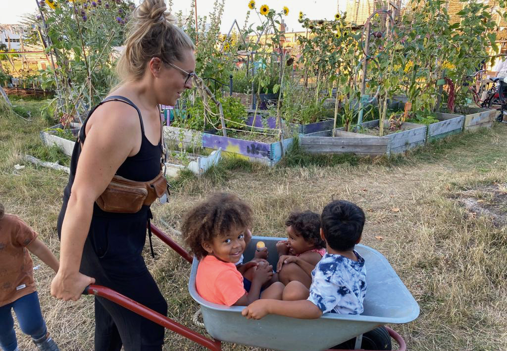 – På en vanlig lekplats leker barnen medan de vuxna sitter bredvid och dricker kaffe. Men odlingen på Guldängen är, liksom byggleken, något man kan njuta av tillsammans. Alla åldrar kan vara med och det är inte kulturellt betingat. Det är handgripligt och konstruktivt, och konstruktiva lekar behövs. Det gör barnen både friare och gladare, säger Sara Stiber, som är barnkulturdesigner i föreningen där det även ingår landskapsarkitekter, miljövetare samt hållbarhets- och utepedagoger med flera.