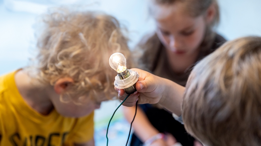 Det är fortfarande sommar, men ett litet gäng stannar inomhus och visar vad de kan. Barnen är 5–6-åriga lärare och vi får en lektion i elektricitetens grunder.