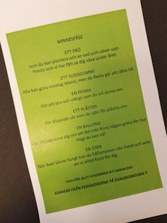När det började bli dags för de äldsta barnen i förskolan Svaleboskogen 7 i Göteborg att lämna förskolan för att gå vidare till förskoleklass hade pedagogerna i smyg planerat och fixat en hemlig avslutningsfest. En härlig hej då-fest! Pedagogerna började med att sätta upp en lapp på kontoret där alla fick skriva upp sina förslag på idéer och aktiviteter till avslutningsfesten.