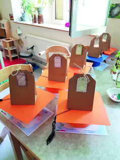 1, 2: Pedagogerna ansvarade för var sin aktivitet till avslutningsfesten från kreativ idé till planering och genomförande. Som de fina minnespåsarna alla barnen fick med sig hem. De innehöll pepp, tröst och styrkekramar. Slutar man förskolan måste man förstås också ha riktiga avslutningshattar.