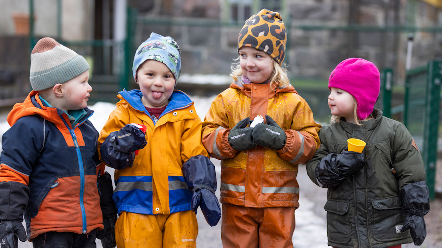 Joel, Tage, Esther och Astrid på avdelningen Solen är vana vid att vara ute i alla väder. Foto: Johan Strindberg