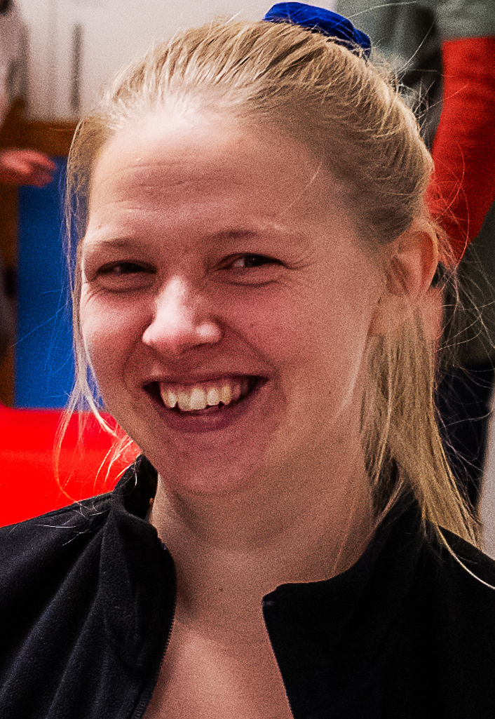 Isabelle Adolfsson, lärare i förskolan, hejar på när Alicia närmar sig hockeymålet.