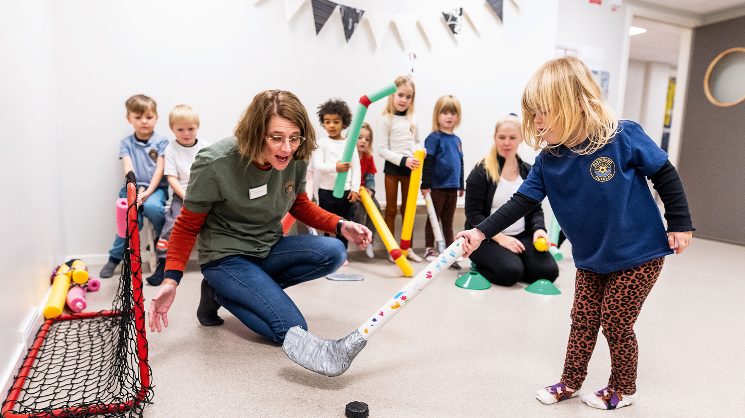 – Vi gör anpassade varianter för de yngre här på förskolan. Med innebandyn gjorde vi mjuka bandyklubbor av sådana där flytande skumstavar de har på badhusen och spelade inne på avdelningen, säger Sanna Petersson.