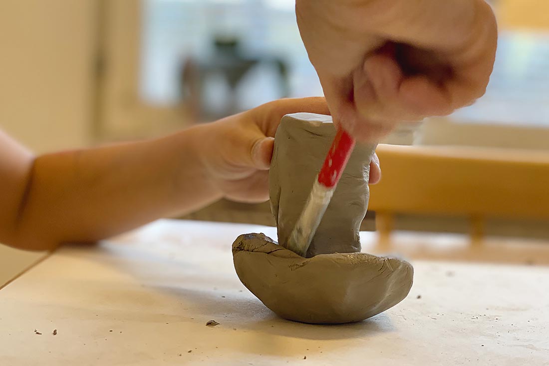 Barnen fick arbeta i lera och göra egna svampar. De blev allt från kantareller till taggsvamp och eldsvamp. Foto: Mercedes Munguia och Förskolan Kronan